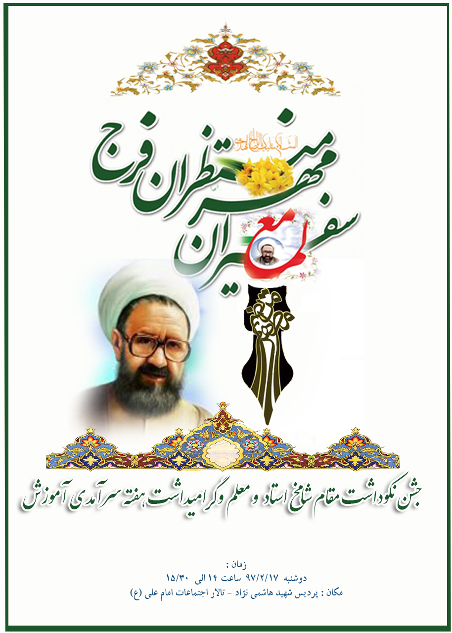 به همت بسیج دانشجویی وانجمن اسلامی پردیس شهید هاشمی نژاد برگزار می گردد. جشن بزرگ سفیران مهر - منتظران فرج