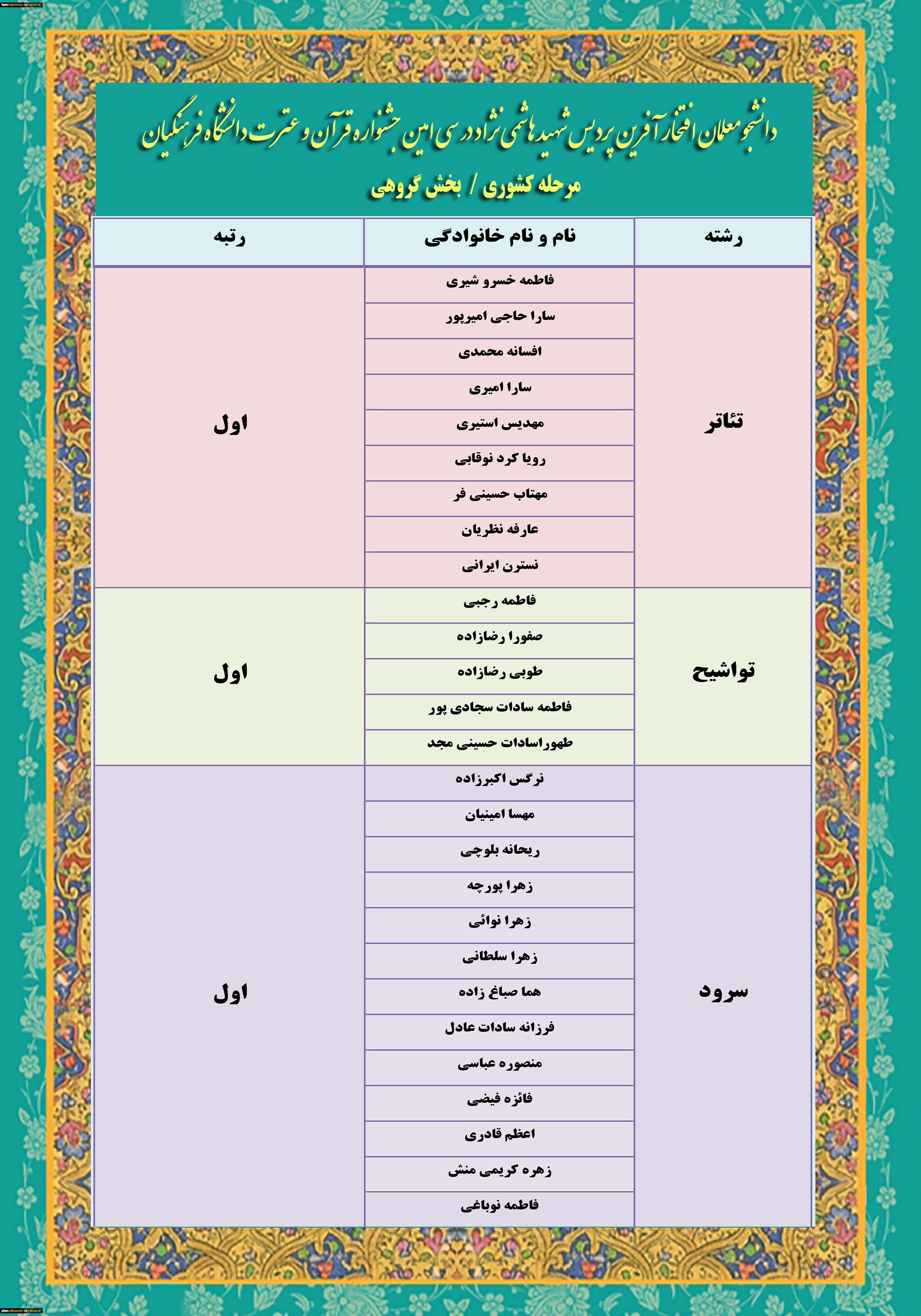 افتخار آفرینی دانشجو معلمان پردیس شهید هاشمی نژاد را در