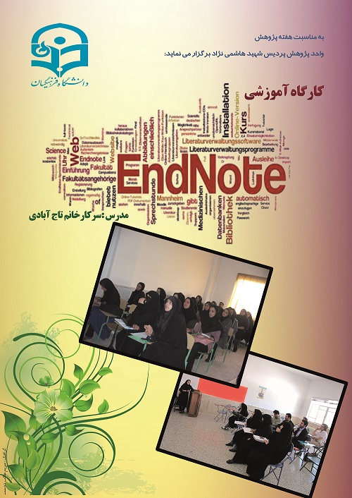 - کارگاه end note روز سه شنبه24/9/93 ساعت 30/11 الی 13، تالار امام علی