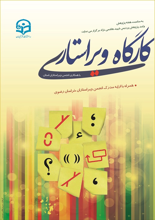 - کارگاه ویراستاری،روز یکشنبه 23/9/93 ساعت 30/11 الی13 ، تالار امام علی