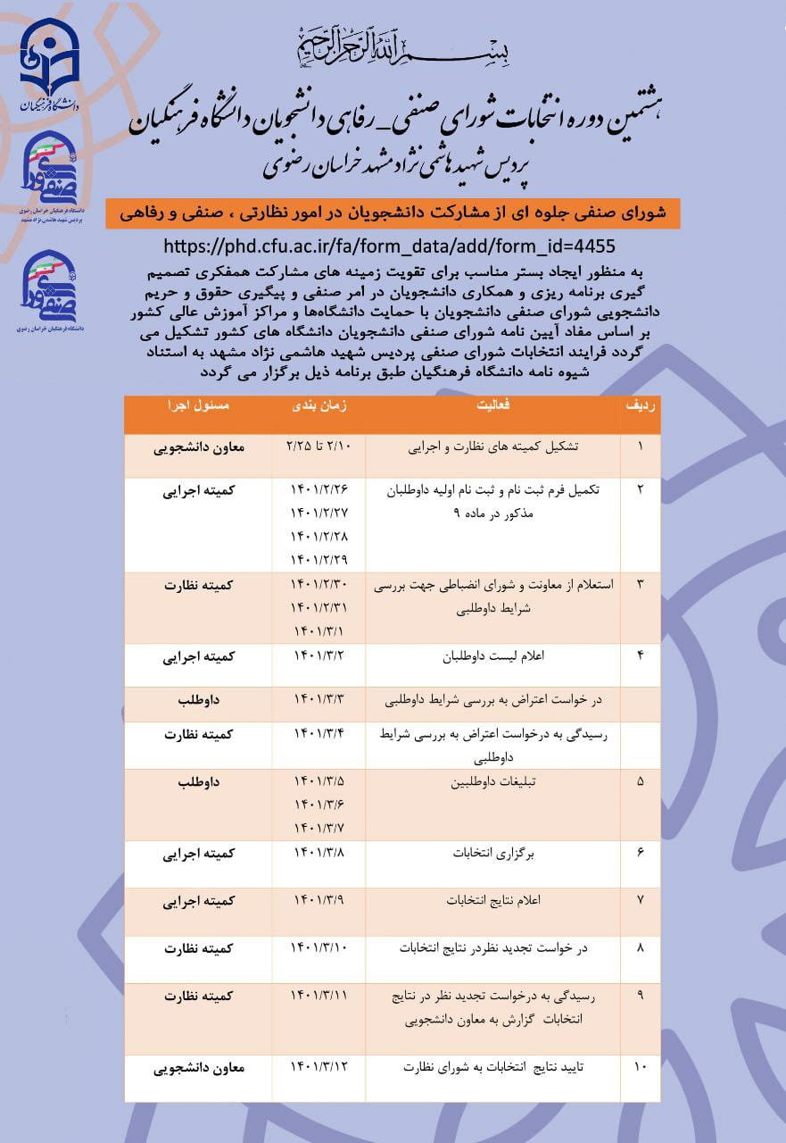 هشتمین دوره انتخابات شورای صنفی _ رفاهی دانشجویان دانشگاه فرهنگیان (پردیس شهید هاشمی نژاد مشهد)