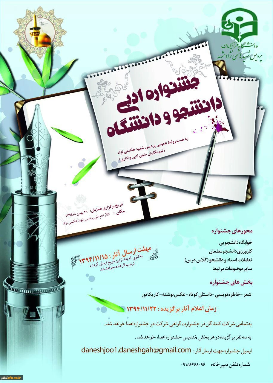 امتیاز دهید : نخستین جشنواره ادبی دانشجو ودانشگاه به همت تیم های روابط عموی پردیس برگزار میگردد یکشنبه 4 بهمن 1394 ساعت 18:56