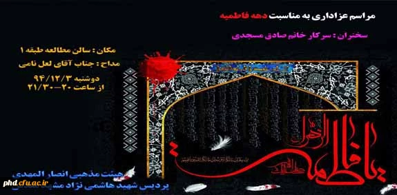 امتیاز دهید : براگزاری مراسم عزاداری به مناسبت ایام شهادت حضرت فاطمه زهرا (س) سهشنبه 4 اسفند 1394 ساعت 8:59