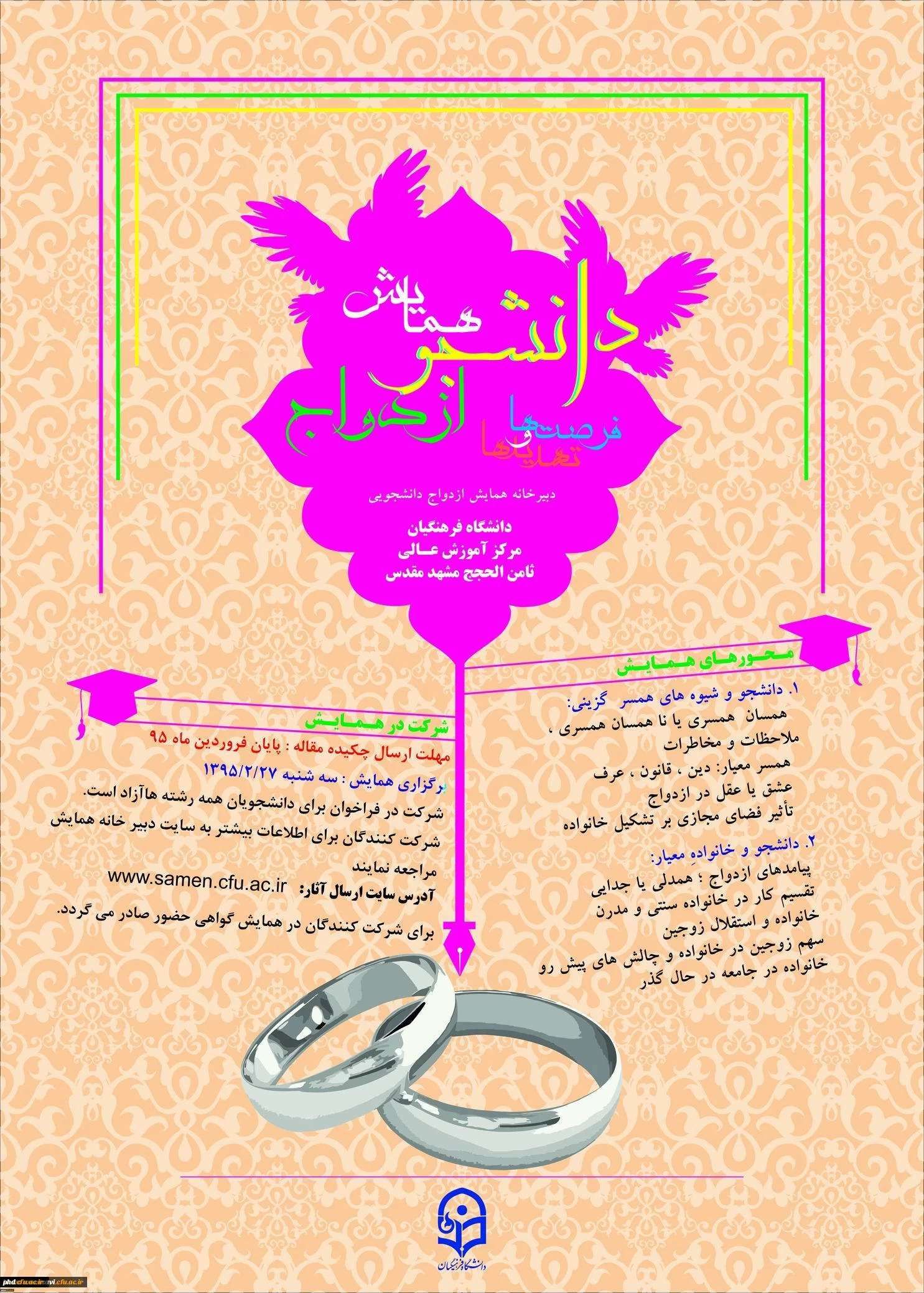 امتیاز دهید : نخستین همایش علمی – پژوهشی دانشجویی با عنوان (( دانشجو ، ازدواج ، فرصت و تهدید ها )) پنجشنبه 19 فروردین 1395 ساعت 17:57