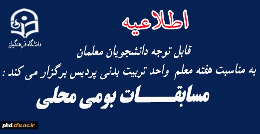 امتیاز دهید : به مناسبت هفته معلم واحد تربیت بدنی پردیس برگزار می کند : مسابقات بومی محلی شنبه 11 اردیبهشت 1395 ساعت 9:17