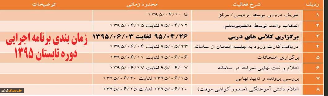 زمان بندی برنامه اجرایی دوره تابستان 1395