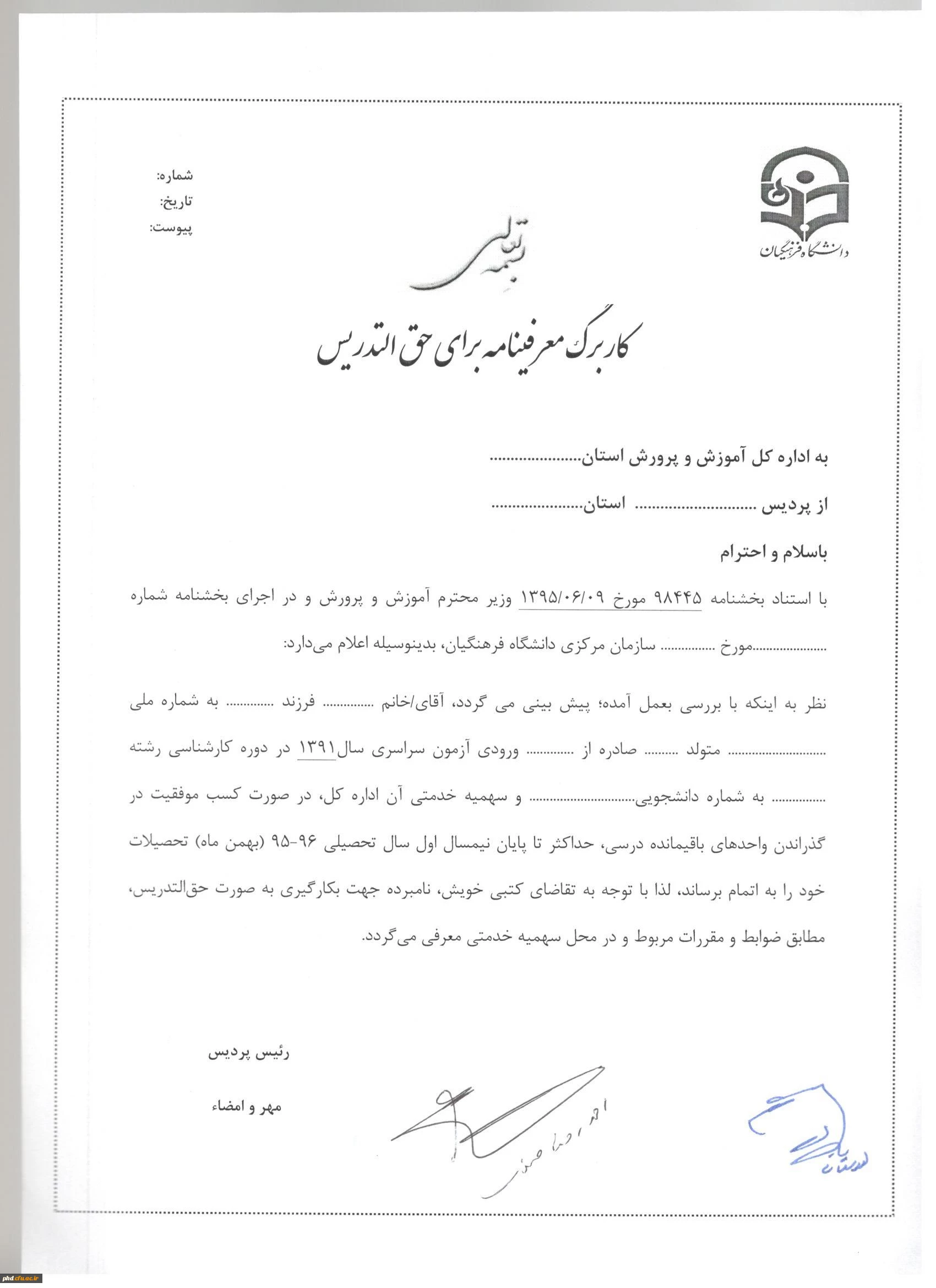 معرفی نامه برای حق التدریس