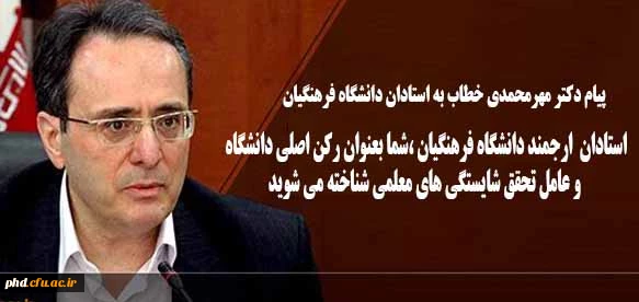 پیام دکتر مهر محمدی خطاب به استادان دانشگاه فرهنگیان