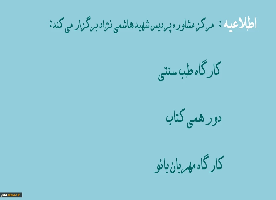 مرکز مشاوره پردیس شهیدهاشمی نژاد مشهد برگزار می کند: