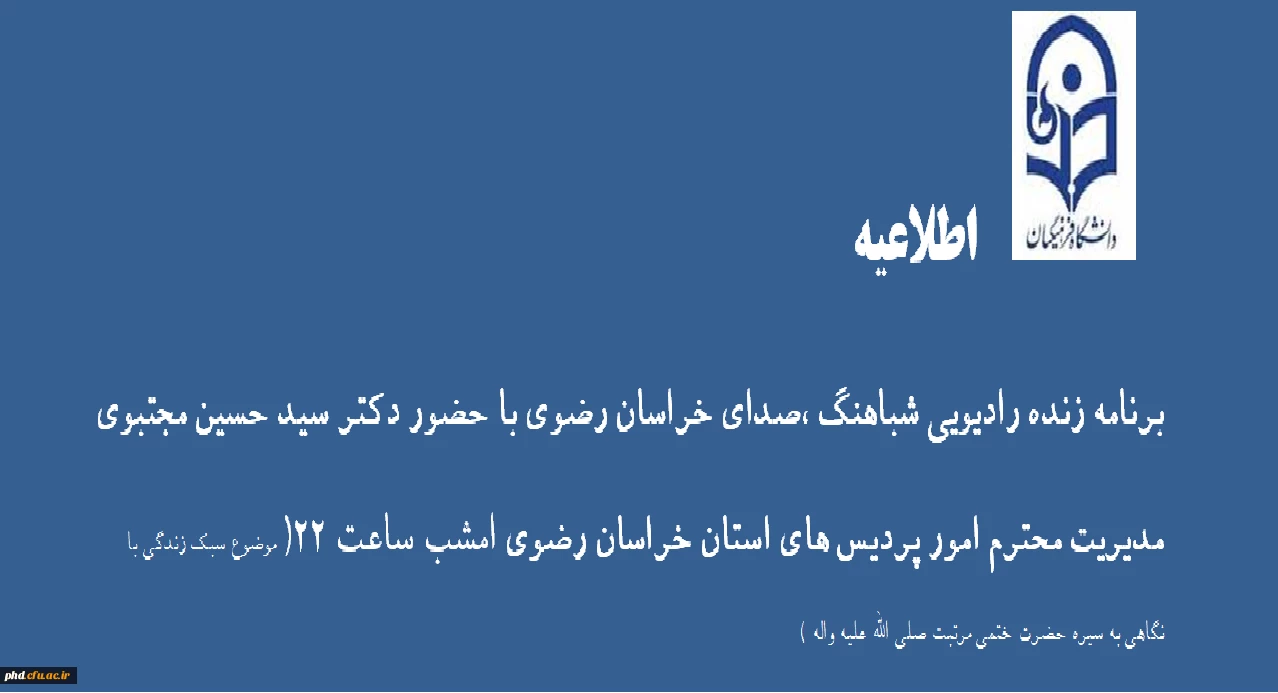 امتیاز دهید : برنامه صدای خراسان رضوی شباهنگ امشب با حضور دکتر مجتبوی چهارشنبه 24 آذر 1395 ساعت 15:18