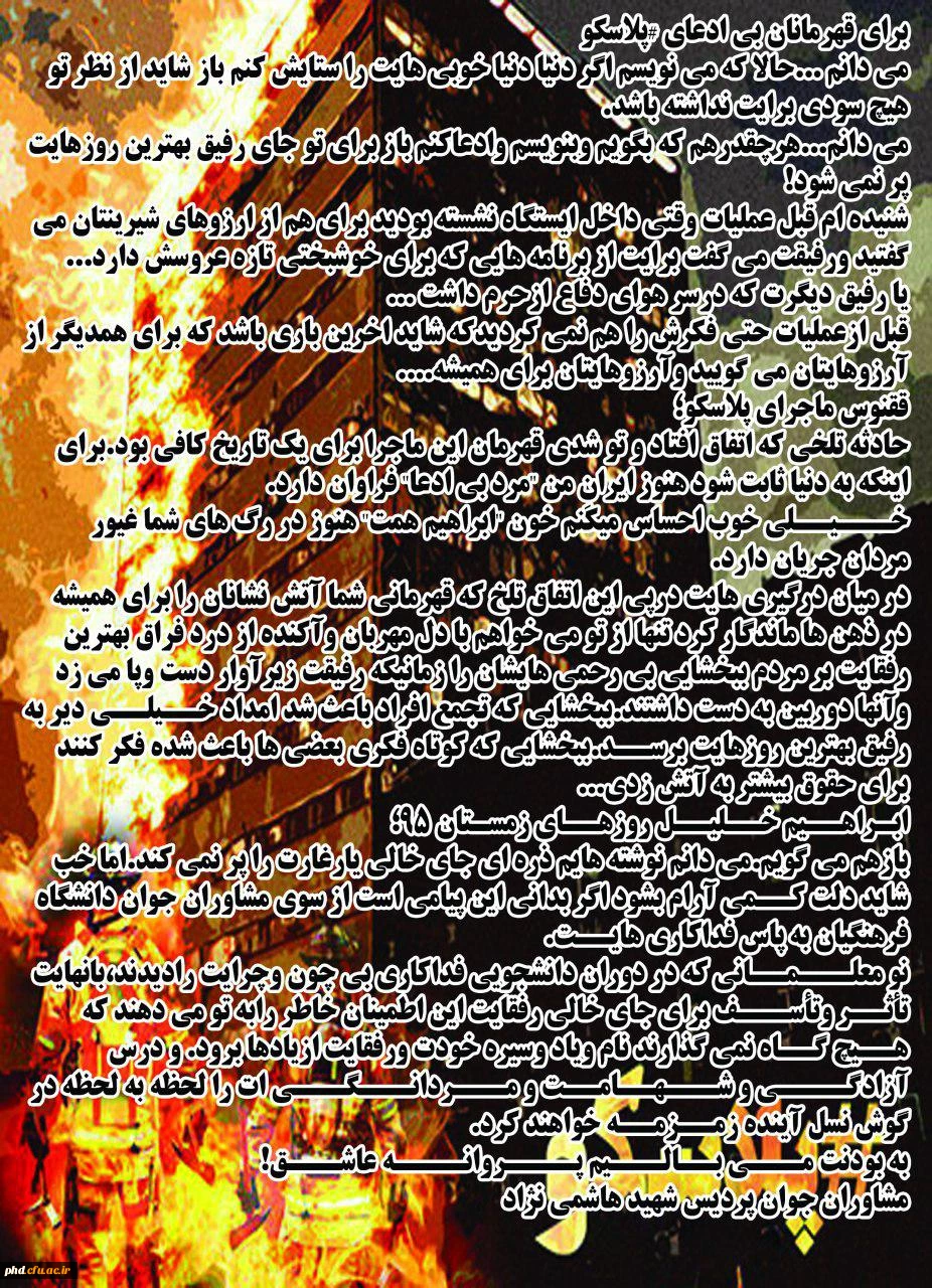 پیام مشاوران جوان پردیس هاشمی نژاد به مناسبت شهادت آتش نشان ها، قهرمانان بی ادعای پلاسکو