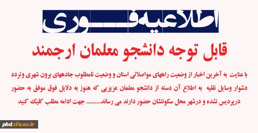 امتیاز دهید : اطلاعیه وضعیت حضور در کلاس های آموزشی با توجه به شرایط جوی شنبه 30 بهمن 1395 ساعت 12:37