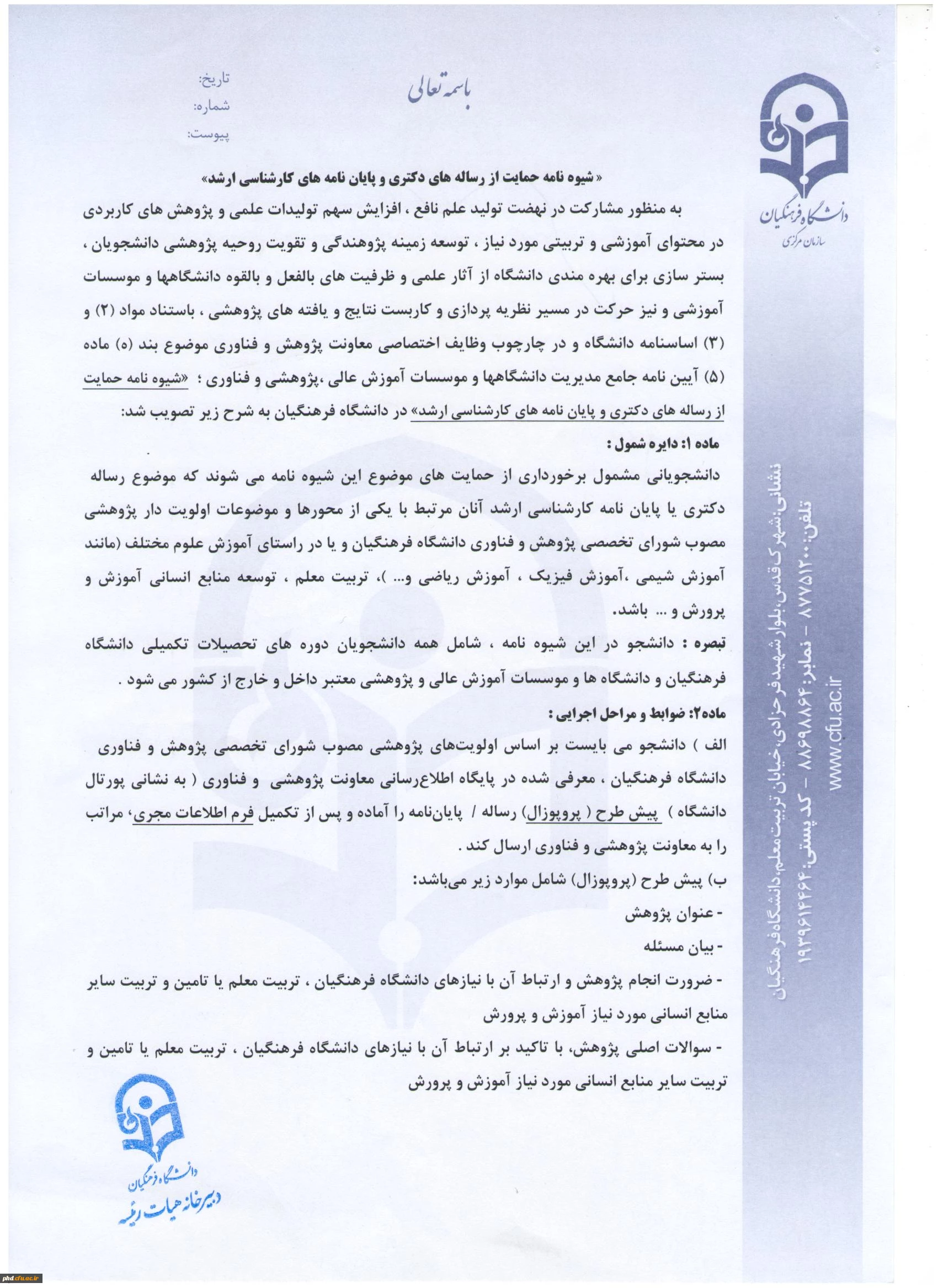 شیوه نامه حمایت از رساله ها و پایان نامه ها