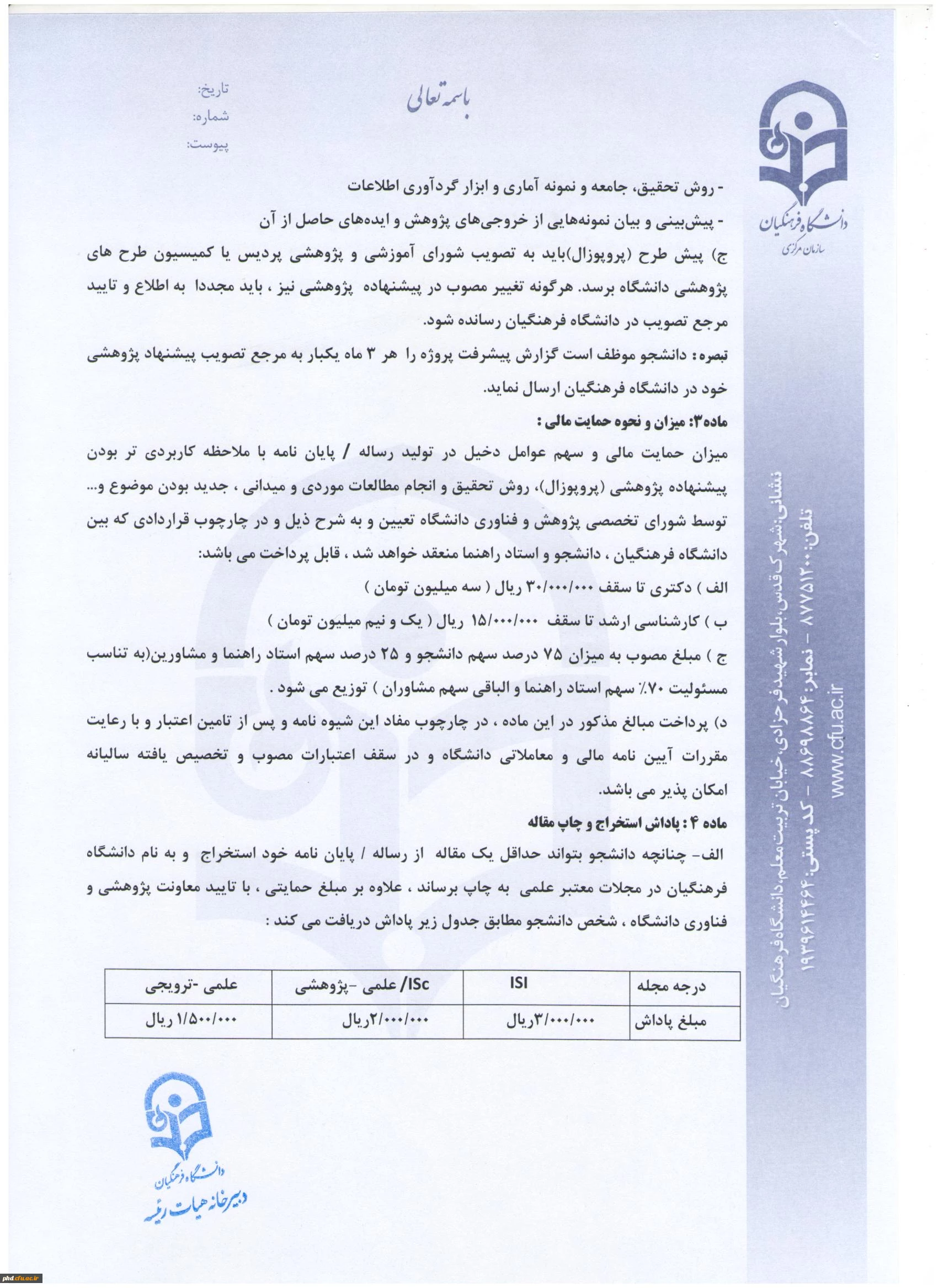 شیوه نامه حمایت از رساله ها و پایان نامه ها