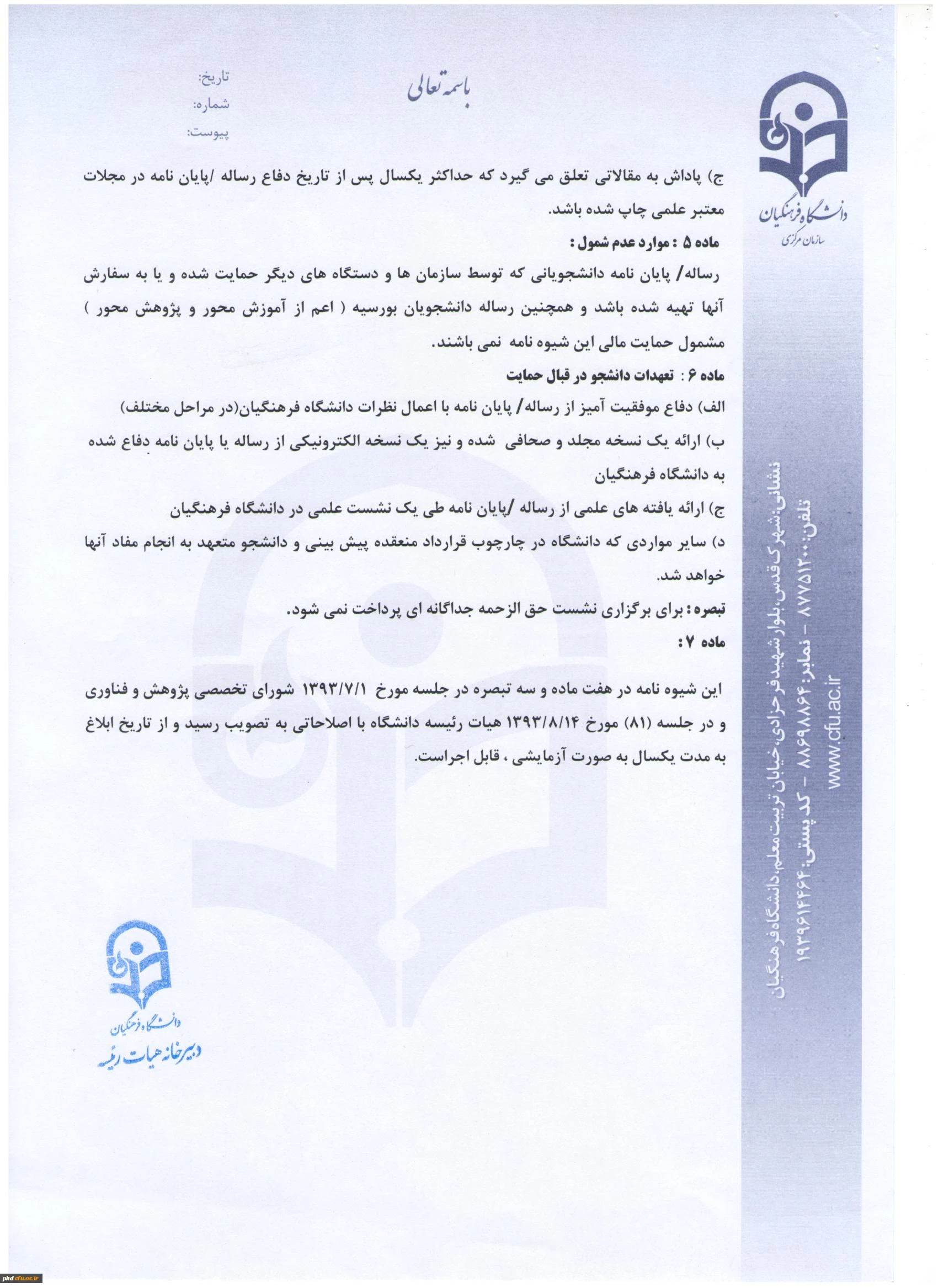 شیوه نامه حمایت از رساله ها و پایان نامه ها