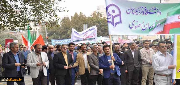 حضور پرشکوه کارکنان ودانشجو معلمان پردیس شهید هاشمی نژاد در راهپیمایی یوم الله 13 آبان