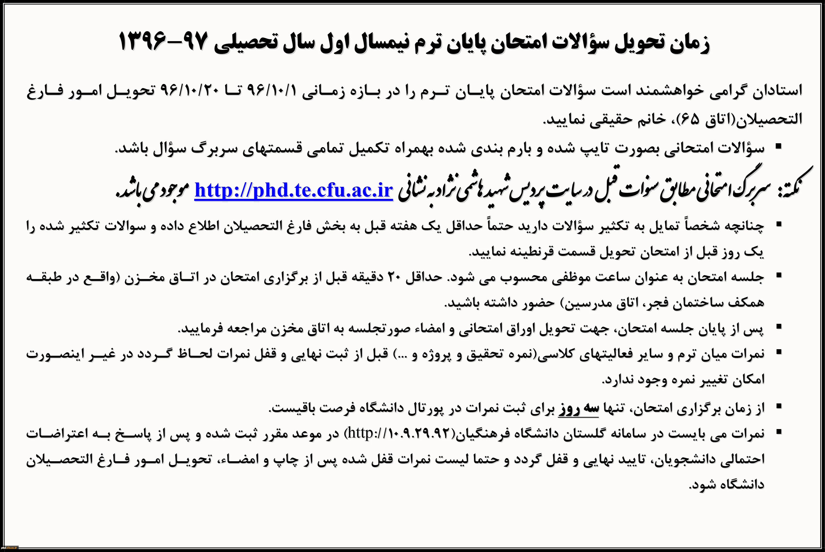 قابل توجه اساتید محترم حهت روئیت اطلاعیه امتحانات پایان ترم تحصیلی دریافت نمونه سربرگ امتحانی کلیک کنید