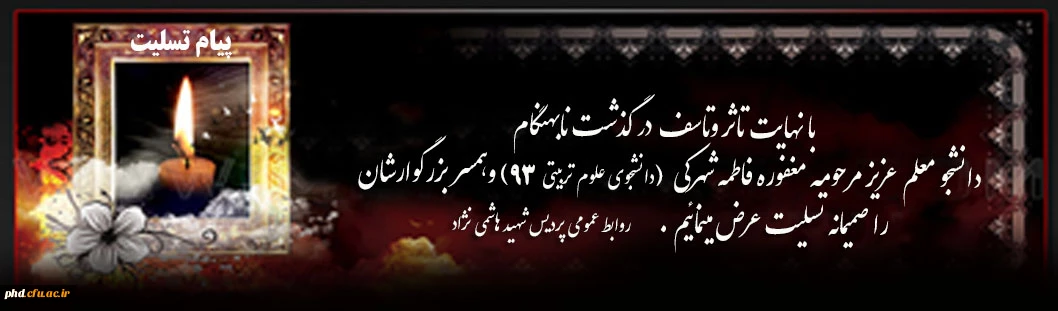 تسلیت در گذشت دانشجومعلم مرحومه فاطمه شهرکی -دانشجو معلم پردیس شهید هاشمی نژاد رشته علوم تربیتی - ورودی 93