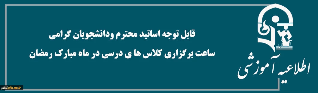 قابل توجه اساتید محترم ودانشجویان گرامی ساعت برگزاری کلاس ها ی درسی در ماه مبارک رمضان