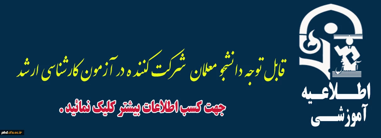 امتیاز دهید : قابل توجه دانشجو معلمان شرکت کنند ه در آزمون کارشناسی ارشد (تکمیل فرم اطلاعات) یکشنبه 13 خرداد 1397 ساعت 9:56