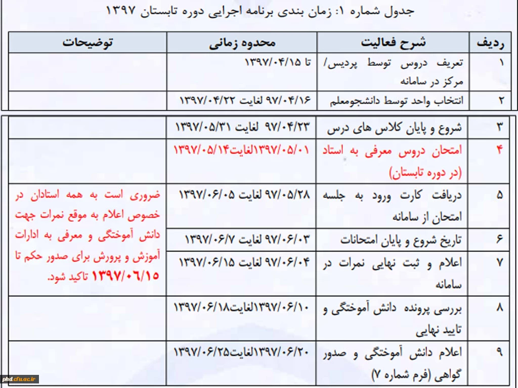 تقویم اجرائی دوره تحصیلی تابستان 97