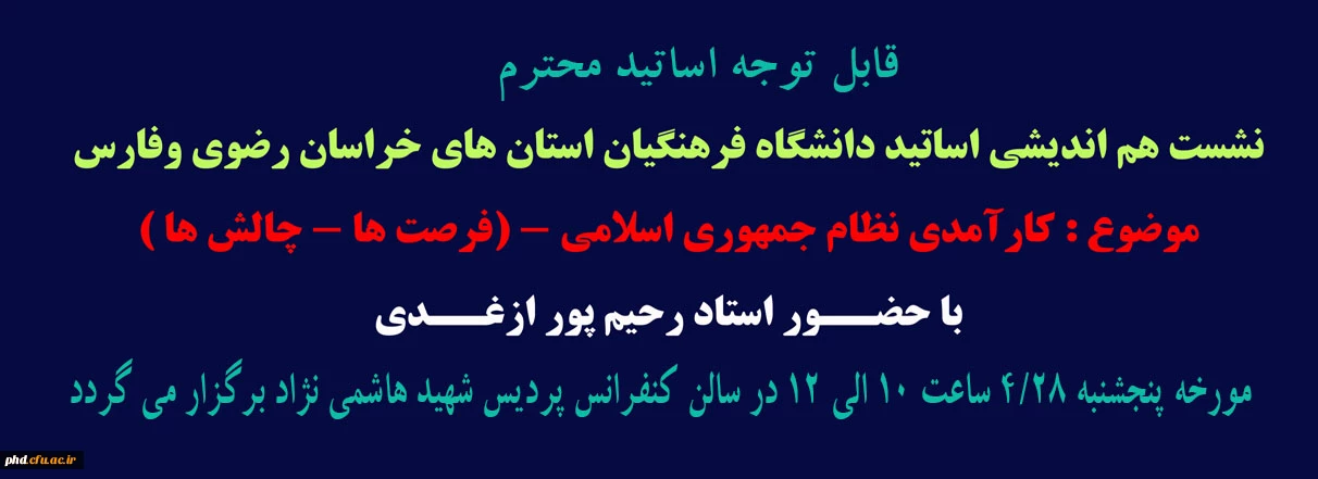 امتیاز دهید : برگزاری نشست هم اندیشی اساتید دانشگاه فرهنگیان خراسان رضوی واستان فارس چهارشنبه 27 تیر 1397 ساعت 9:35