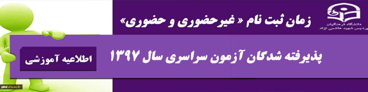 امتیاز دهید : مان ثبت نام « غیرحضوری و حضوری» پذیرفته شدگان آزمون سراسری سال 1397 چهارشنبه 21 شهریور 1397 ساعت 13:43