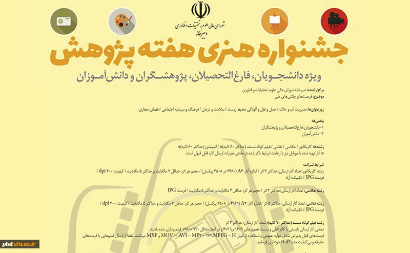 امتیاز دهید : جشنواره هنری هفته پژوهش با موضوع "فرصت ها و چالش های ملی" چهارشنبه 2 آبان 1397 ساعت 8:06