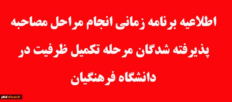 اطلاعیه برنامه زمانی انجام مراحل مصاحبه پذیرفته شدگان مرحله تکمیل ظرفیت در دانشگاه فرهنگیان پردیس شهید هاشمی نژاد