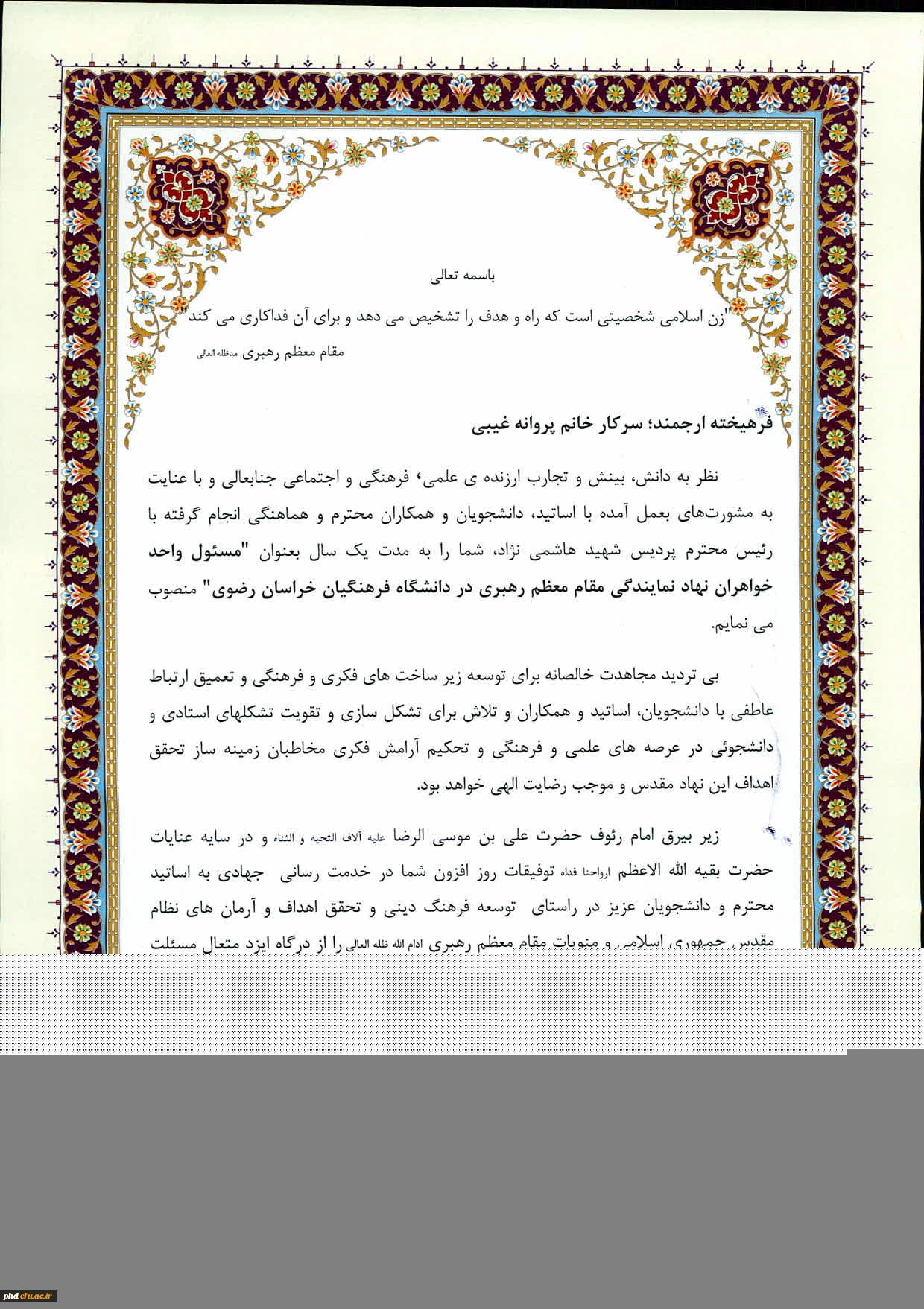 اتصاب مسئول واحد خواهران نمایندگی مقام معظم رهبری