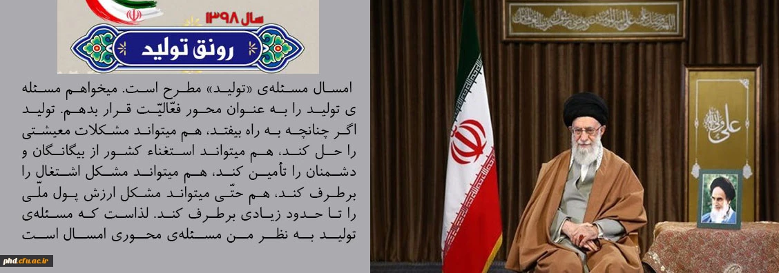امتیاز دهید : رهبر معظم انقلاب سال ۹۸ را سال «رونق تولید» نامگذاری کردند ... جمعه 2 فروردین 1398 ساعت 18:25