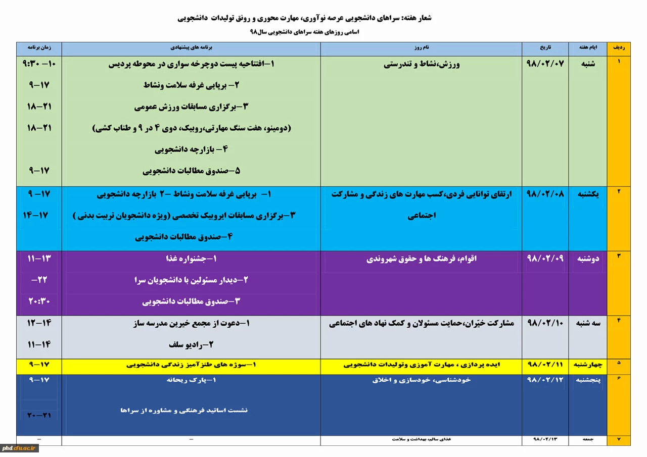 برنامه هفته سراهای دانشجویی