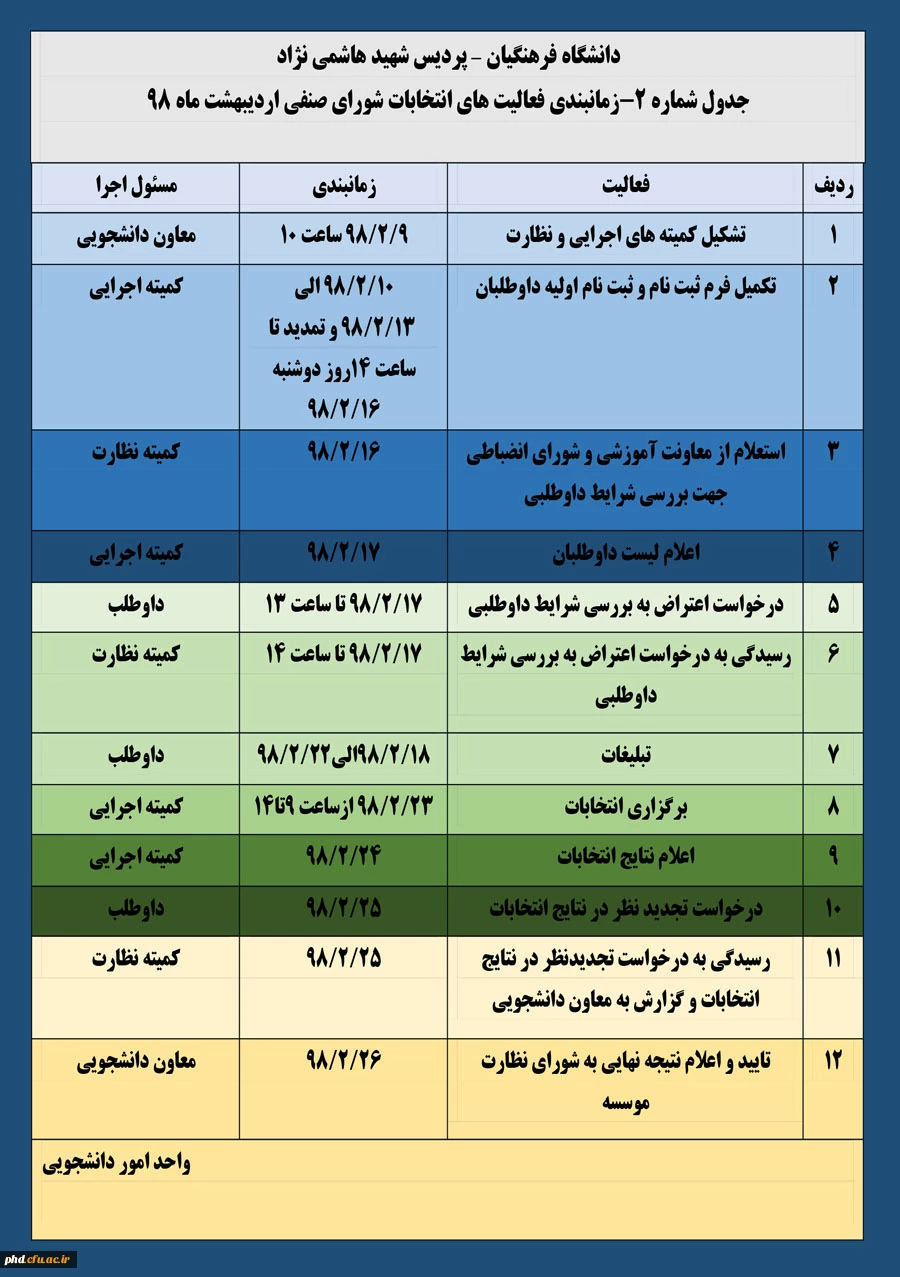 زمانبندی فعالیت های انتخابات شورای صنفی اردیبهشت ماه 98