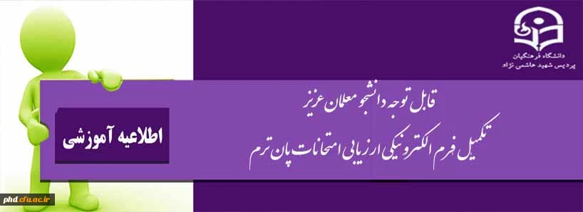 امتیاز دهید : اطلاعیه مهم - تکمیل فرم الکترونیکی ارزیابی امتحانات پایان ترم توسط دانشجو معلمان یکشنبه 2 تیر 1398 ساعت 7:58