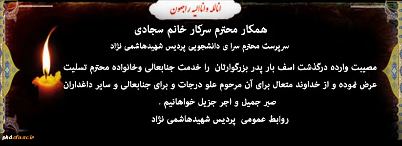 عرض تسلیت به همکار محترم سرکار خانم سجادی سرپرست محترم سرا ی دانشجویی پردیس شهیدهاشمی نژاد