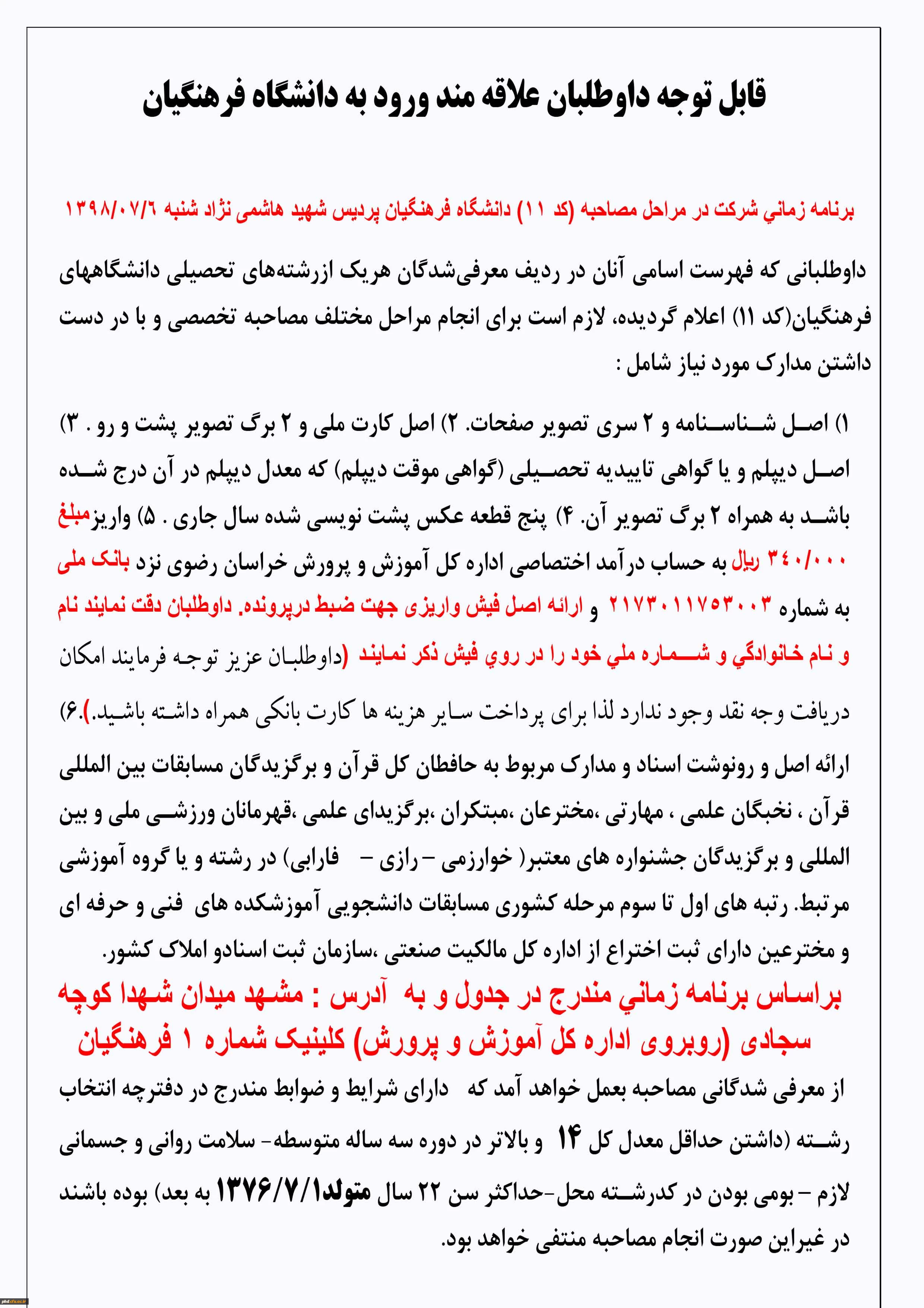 قابل توجه داوطلبان علاقه مند ورود به دانشگاه فرهنگیان