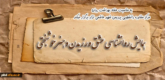 امتیاز دهید : برگزاری همایش روانشناسی عشق وهنر خوشبختی به مناسبت هفته بهداشت روان یکشنبه 20 مهر 1393 ساعت 8:36