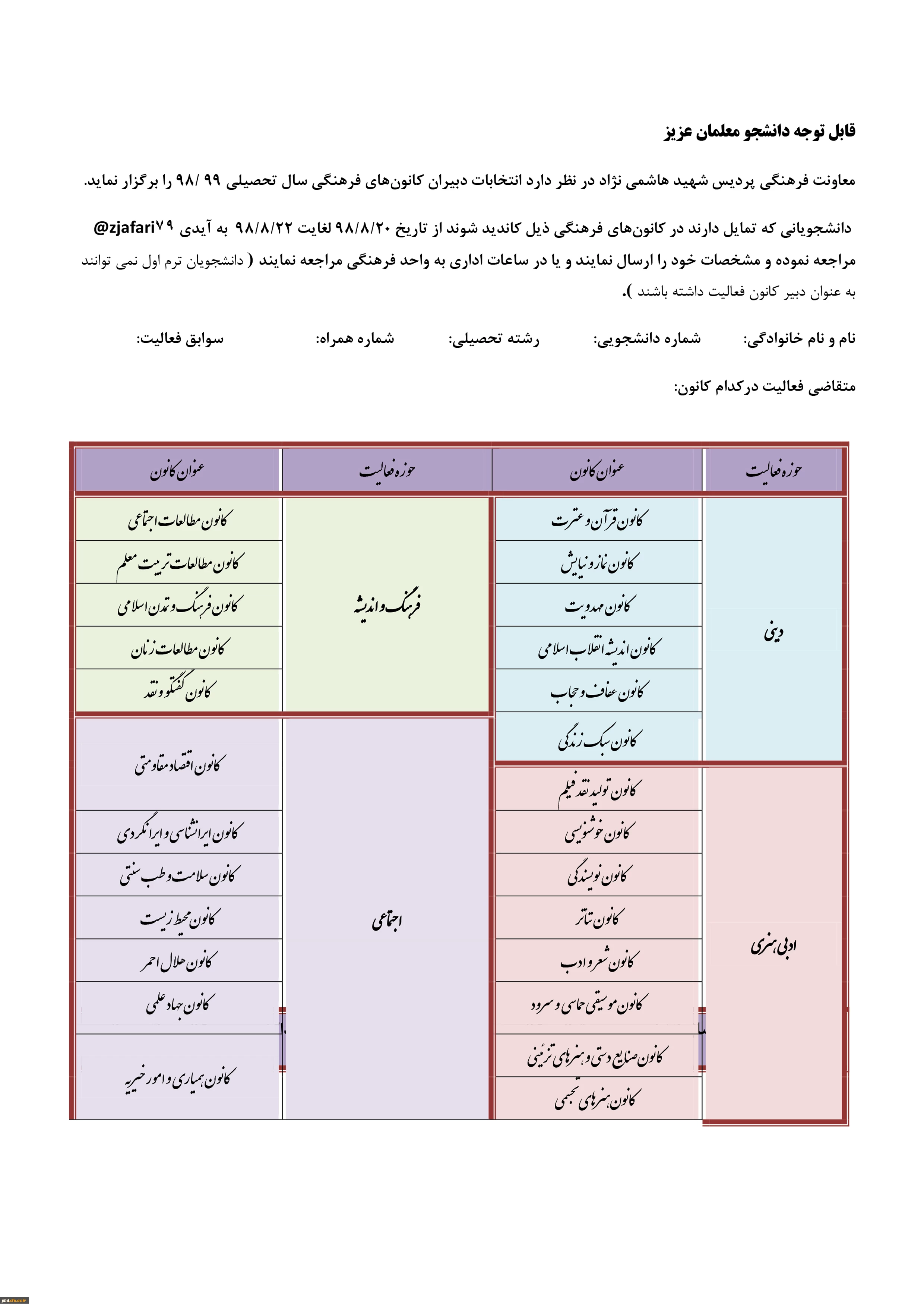 انتخابات دبیران کانون های فرهنگی سال تحصیلی 99 /98