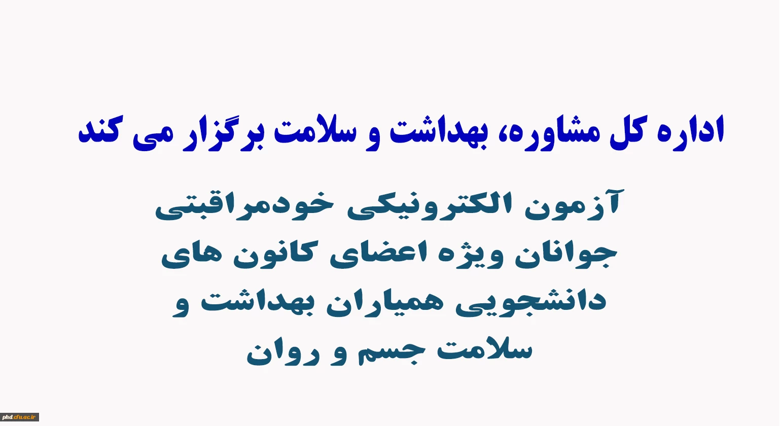 آزمون الکترونیکی خودمراقبتی جوانان ویژه اعضای کانون های دانشجویی همیاران بهداشت و سلامت جسم و روان 2