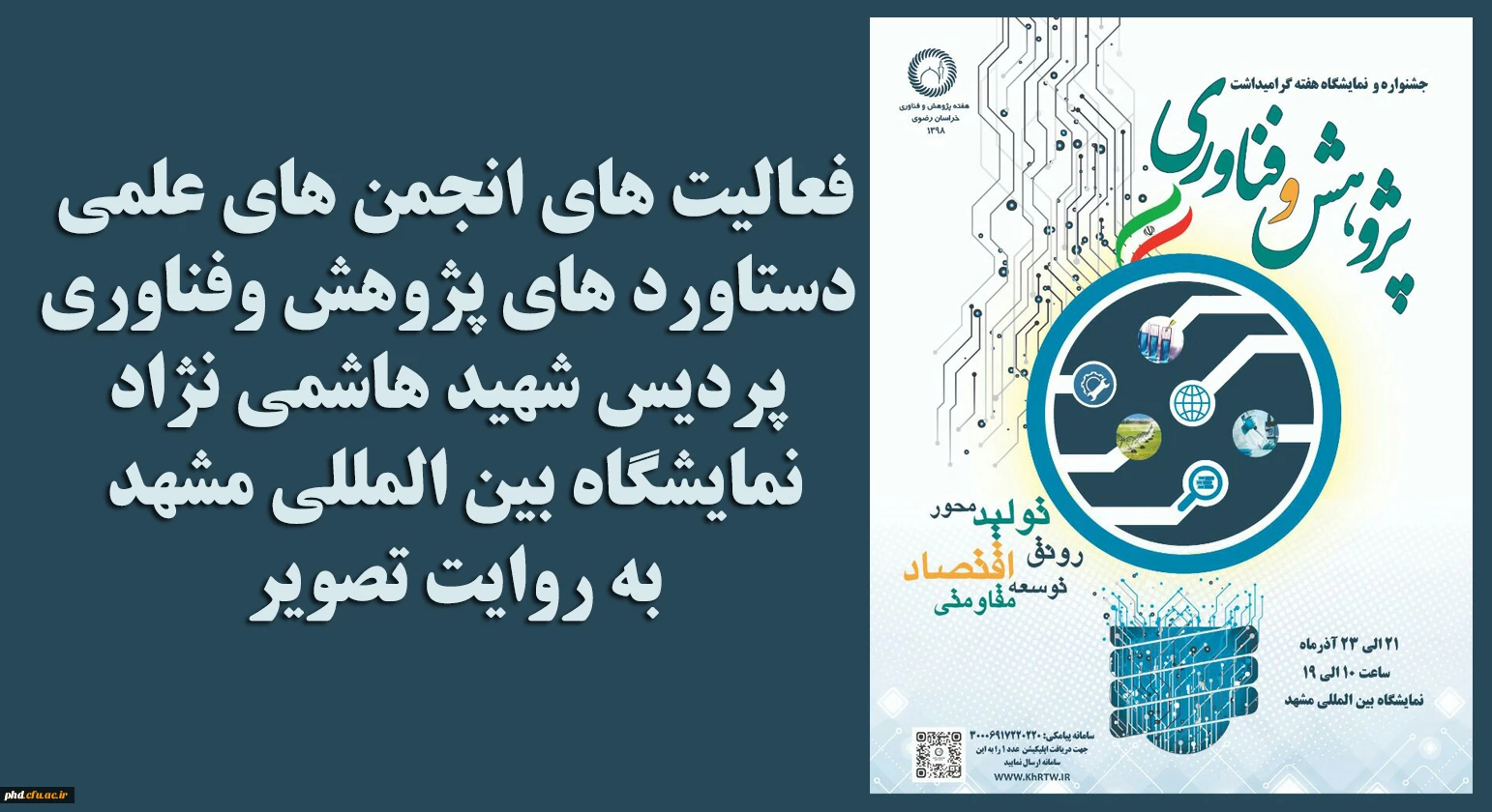برنامه روز شنبه 23آذر 98 برنامه های نمایشگاه دستاوردهای پژوهش وفناوری دانشگاه فر هنگیان ـ پردیس شهید هاشمی نژاد نمایشگاه بین المللی مشهد 2