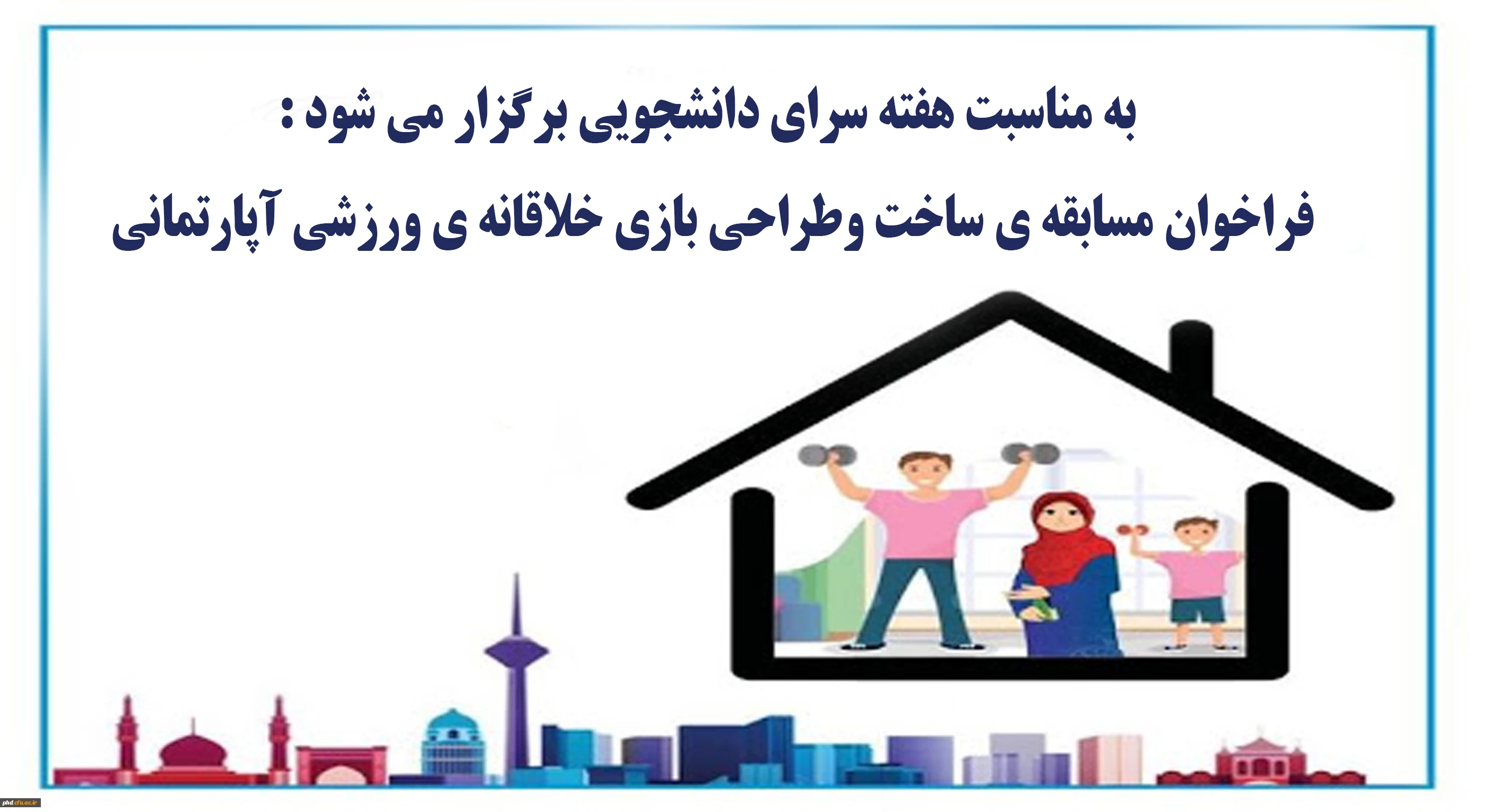 امتیاز دهید : فراخوان مسابقه ی ساخت وطراحی بازی خلاقانه ی ورزشی آپارتمانی 2 چهارشنبه 17 اردیبهشت 1399 ساعت 22:40