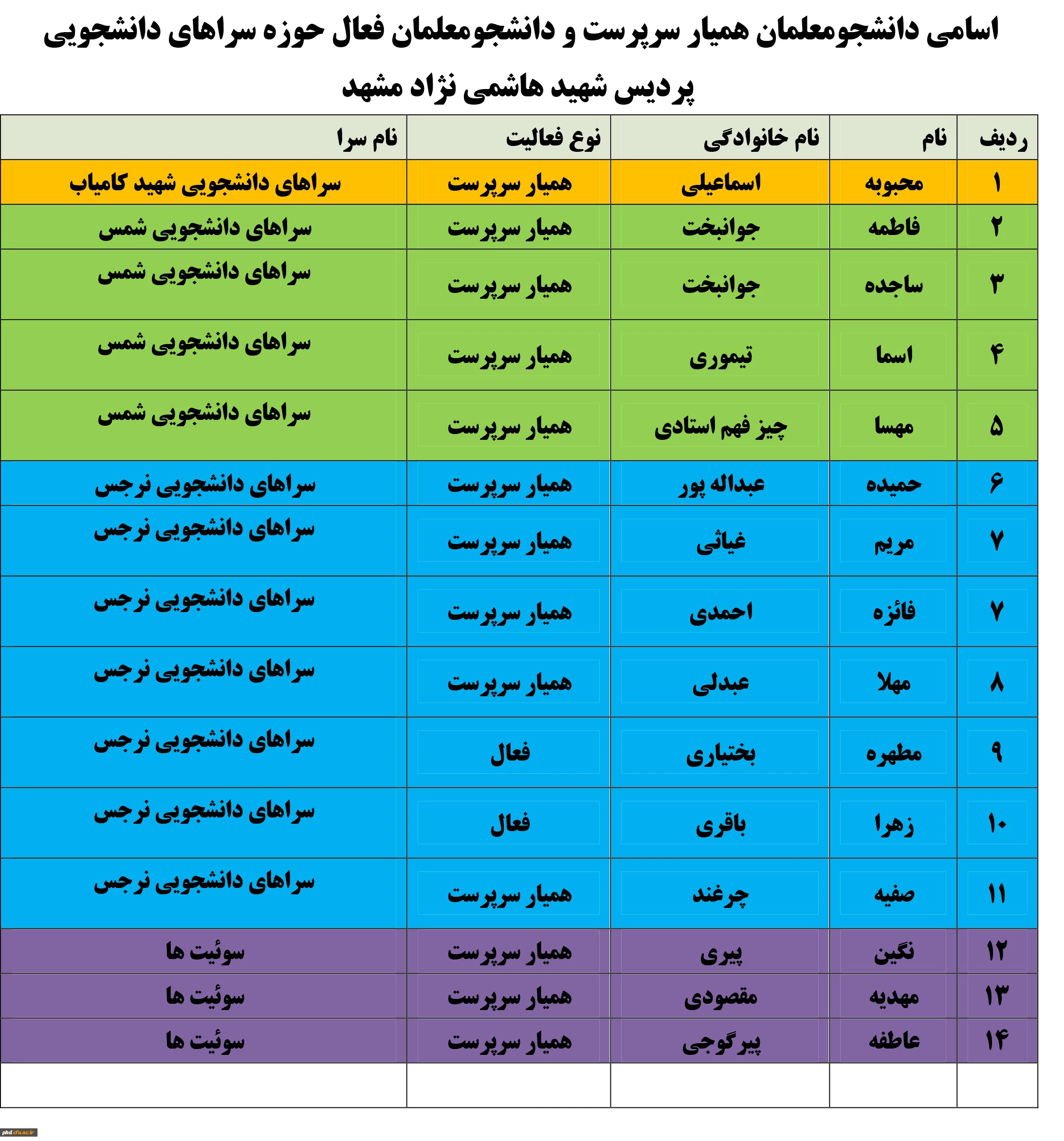 لیست همیاران سرپرست