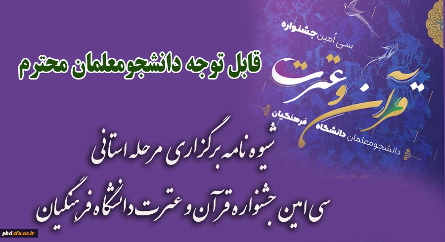 امتیاز دهید : شیوه نامه برگزاری مرحله استانی سی امین جشنواره قرآن و عترت دانشگاه فرهنگیان 2 یکشنبه 11 خرداد 1399 ساعت 21:45