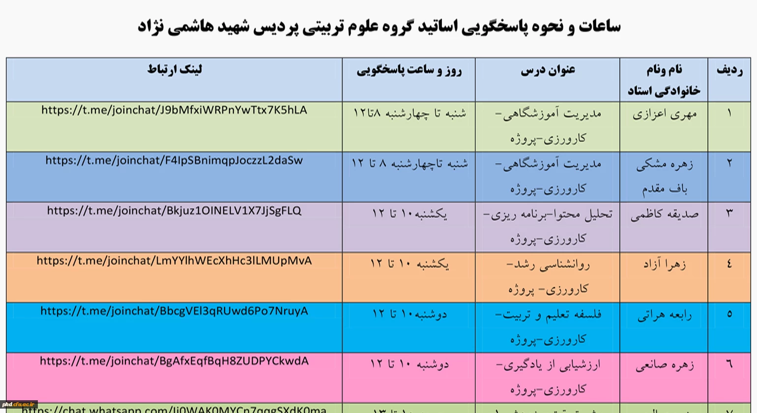 امتیاز دهید : جدول زمان و شیوه پاسخ گویی اساتید گروه علوم تربتی به اشکالات دانشجویان 2 سهشنبه 13 خرداد 1399 ساعت 19:42