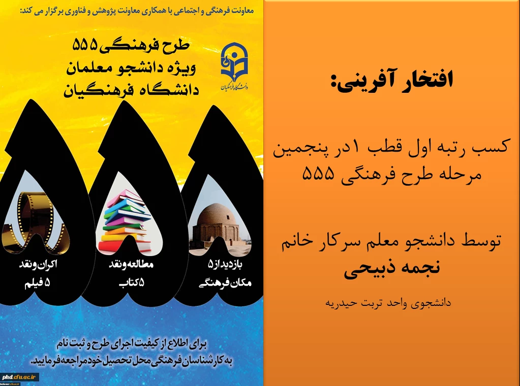 امتیاز دهید : افتخار آفرینی دانشجو معلمان پردیس شهید هاشمی نژاد در طرح فرهنگی 555 با کسب رتبه اول 2 سهشنبه 11 شهریور 1399 ساعت 11:21