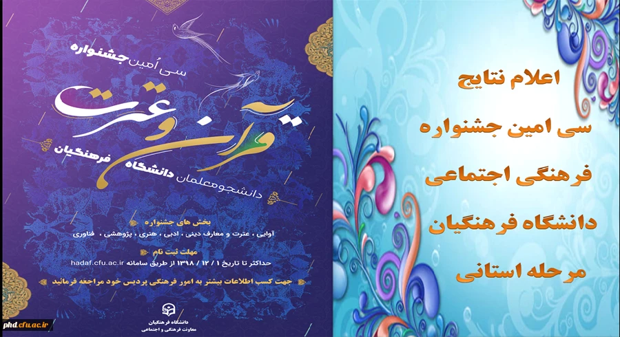 امتیاز دهید : اعلام نتایج سی امین جشنواره فرهنگی اجتماعی دانشگاه فرهنگیان پردیس شهید هاشمی نژاد 2 شنبه 19 مهر 1399 ساعت 12:40