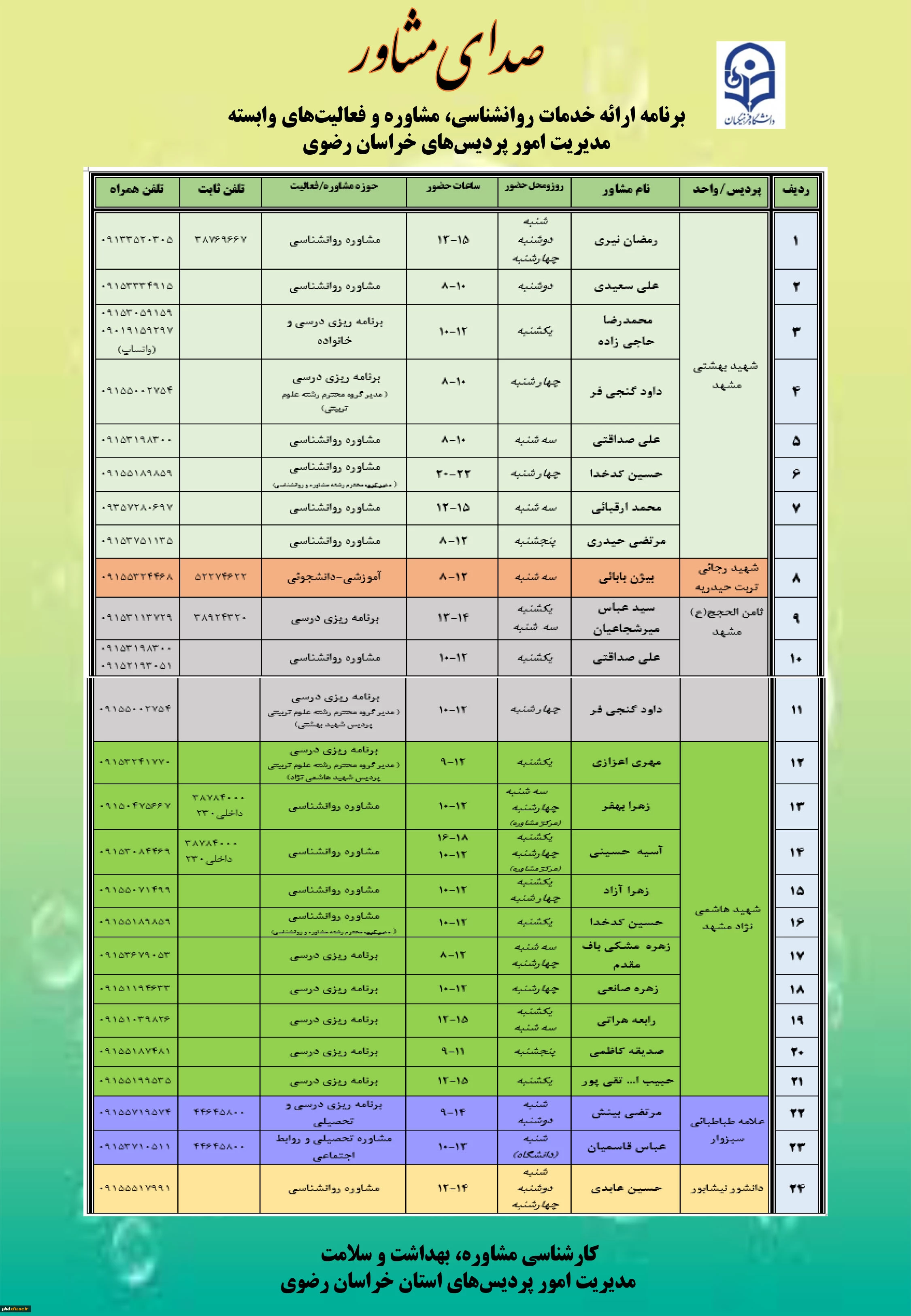 مدیریت امور پردیس های استان