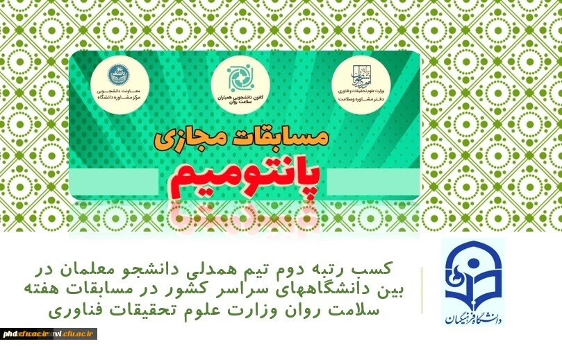 کسب رتبه دوم تیم همدلی دانشجو معلمان پردیس شهید هاشمی نژاد در بین دانشگاههای سراسر کشور در مسابقات هفته سلامت روان وزارت علوم تحقیقات فناوری 2