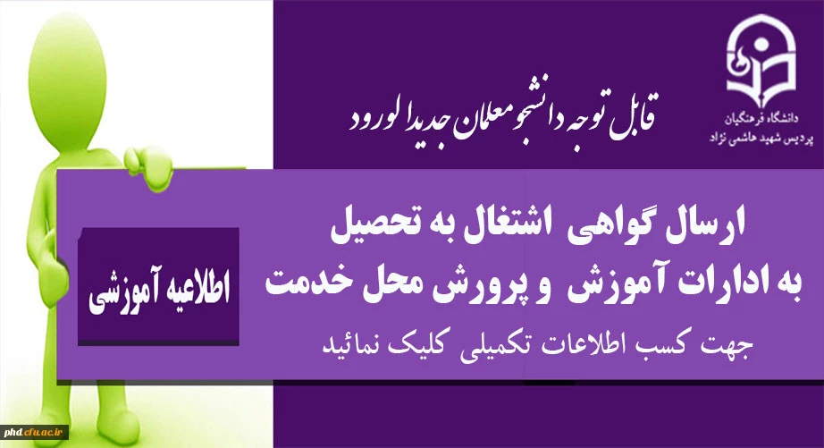 ارسال گواهی  اشتغال به تحصیل  به ادارات آموزش  و پرورش محل خدمت دانشجو معلمان