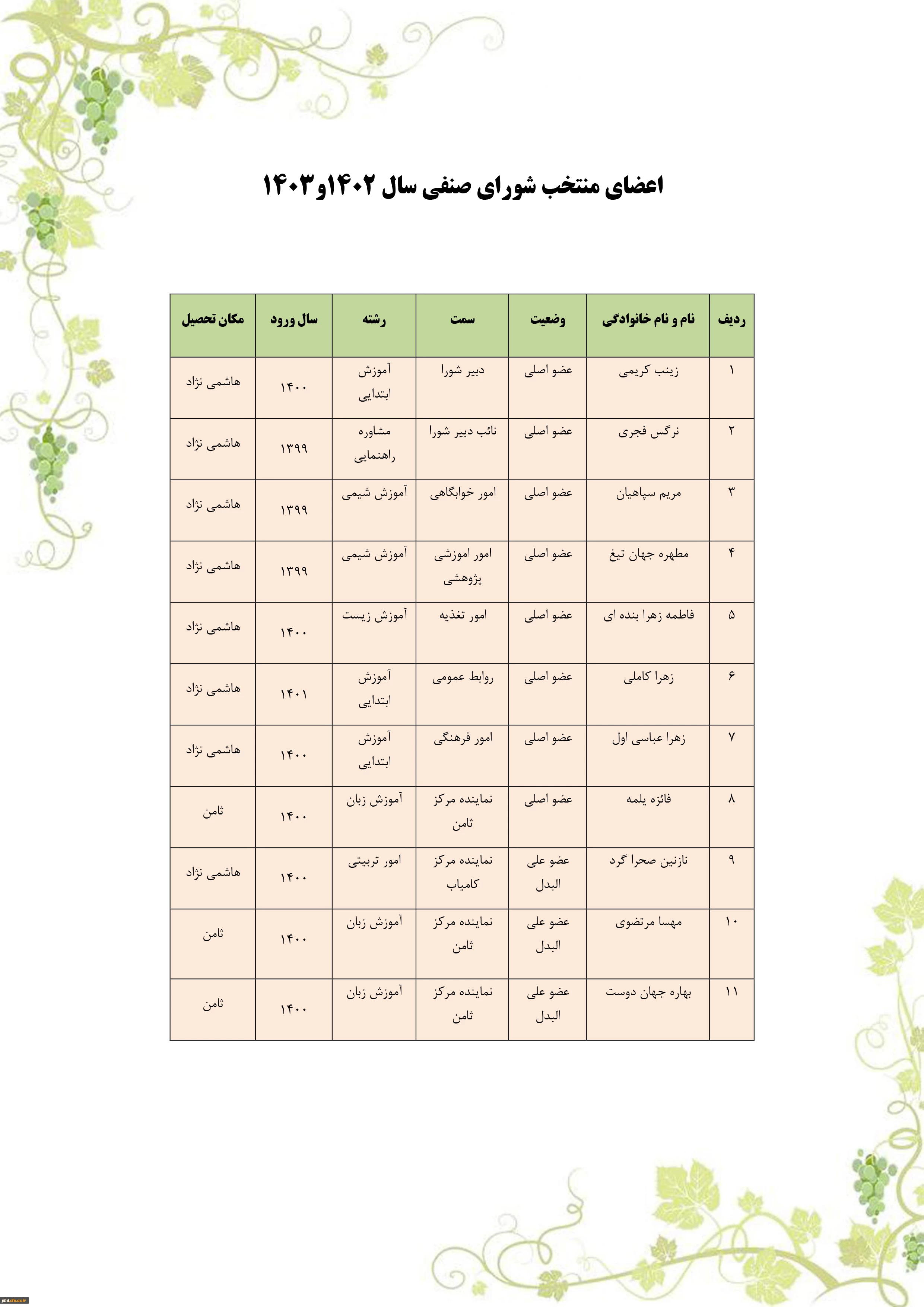 امتیاز دهید : اعضای شورای صنفی ، رفاهی دانشجویی پردیس شهید هاشمی نژاد -سال تحصیلی 1402-1401 شنبه 27 دی 1399 ساعت 11:24